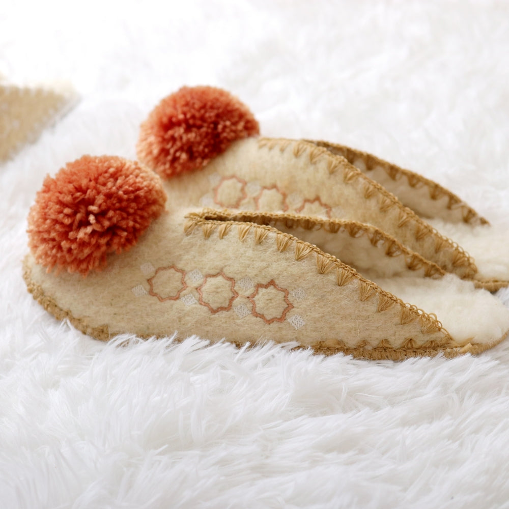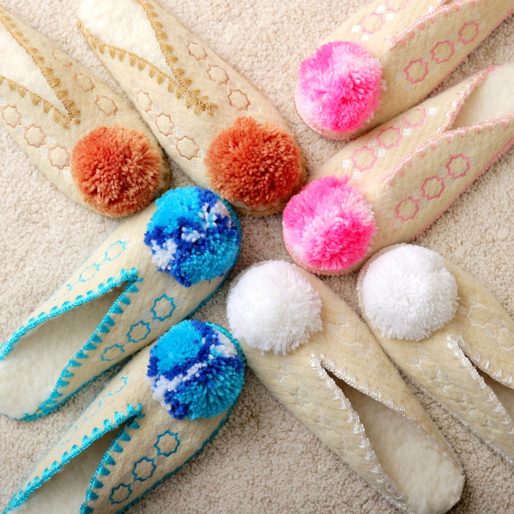 家にこもることが多くなりがちな冬の時間を、ちょっとでも暖かく楽しく過ごしたい。ポンポンバブーシュはそんな思いから生まれました。